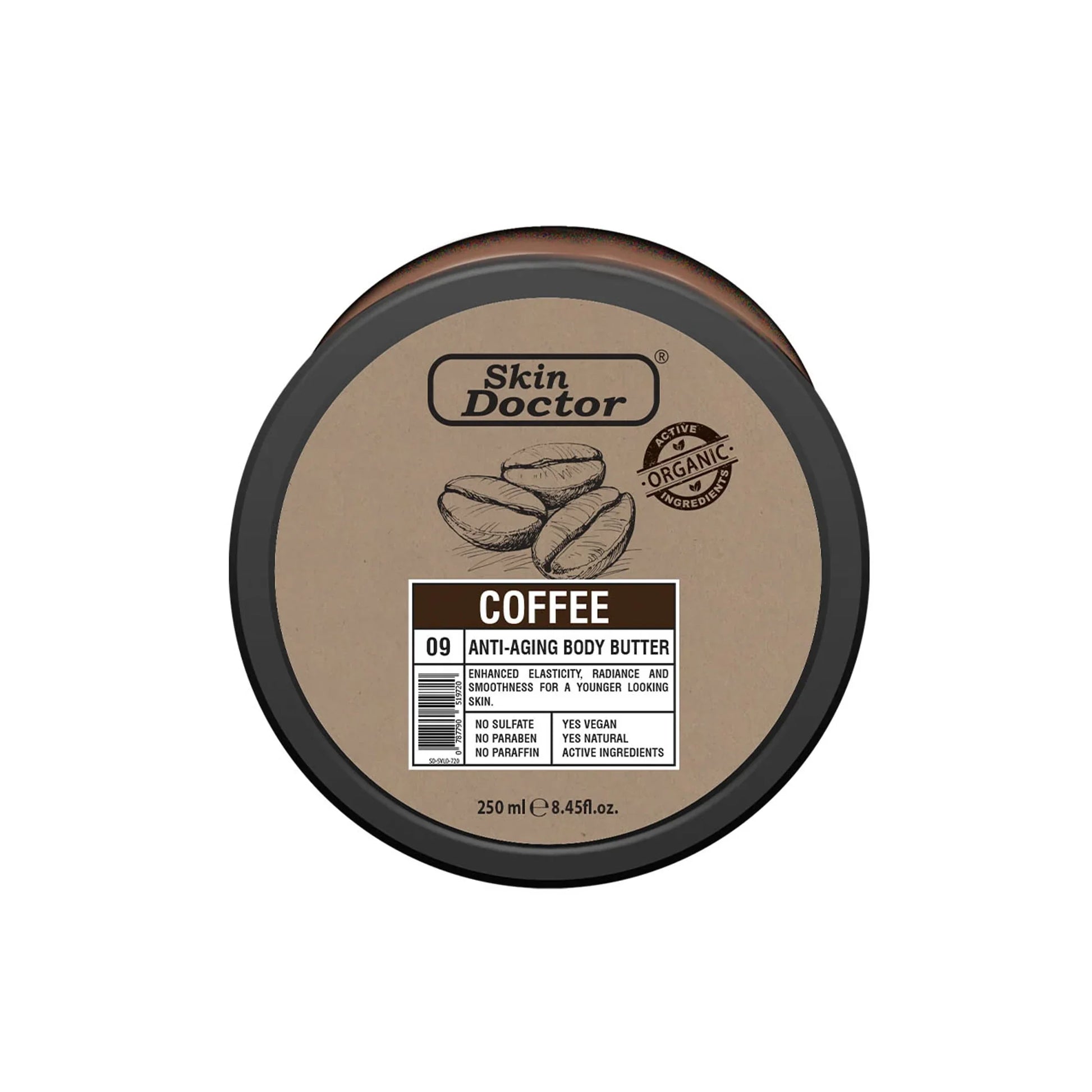 Skin Doctor Coffee Anti-aging Body Butter offers high moisturizing and conditioning properties to dry skin and makes it soft and smooth. Enhanced elasticity, radiance and smoothness for a younger looking skin. - No sulphate. - No paraben. - No paraffin. - Vegan formula. - Natural active ingredients.