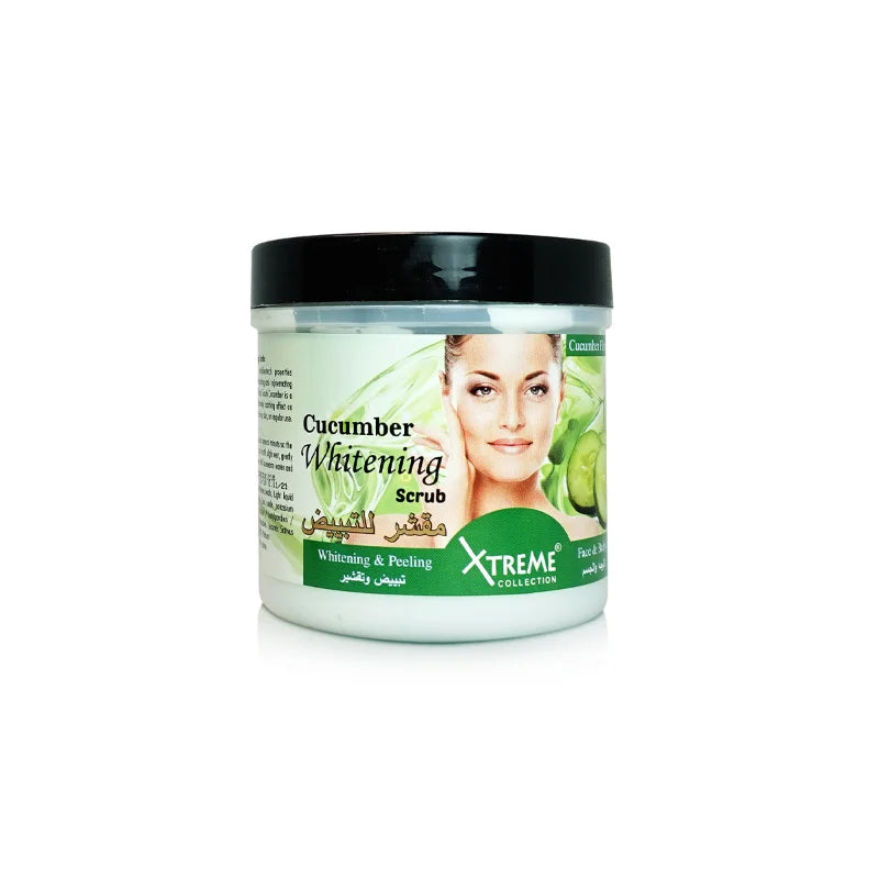 Experience the gentle exfoliating and emollient-rich properties of natural cucumber extract and the stimulating and rejuvenating effects with Xtreme Collection Cucumber Face & Body Whitening Scrub. Cucumber extract is naturally anti-inflammatory and has extreme soothing effects on the skin.