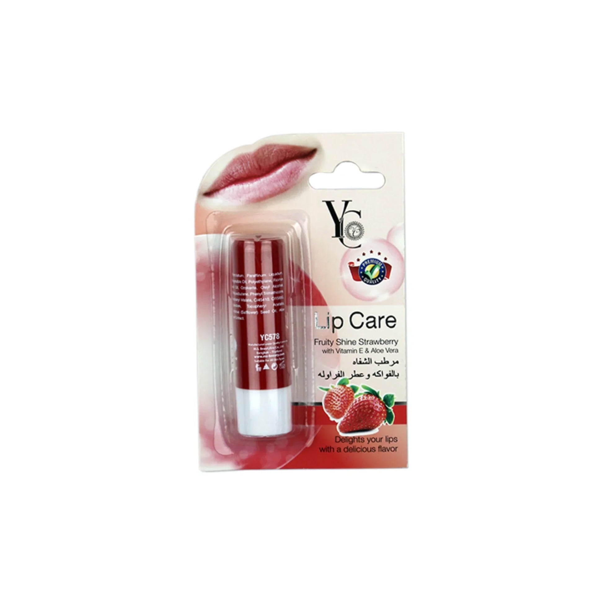 YC Essential Lip Care is a Fruity Shine (Strawberry) with Vitamin E & Aloe Vera delights your lips with a delicious flavour of strawberry. It helps nourish and provide long-lasting moisture to protect lips from drying out in all seasons. This formula leaves lips with aromatic and remarkable shine.