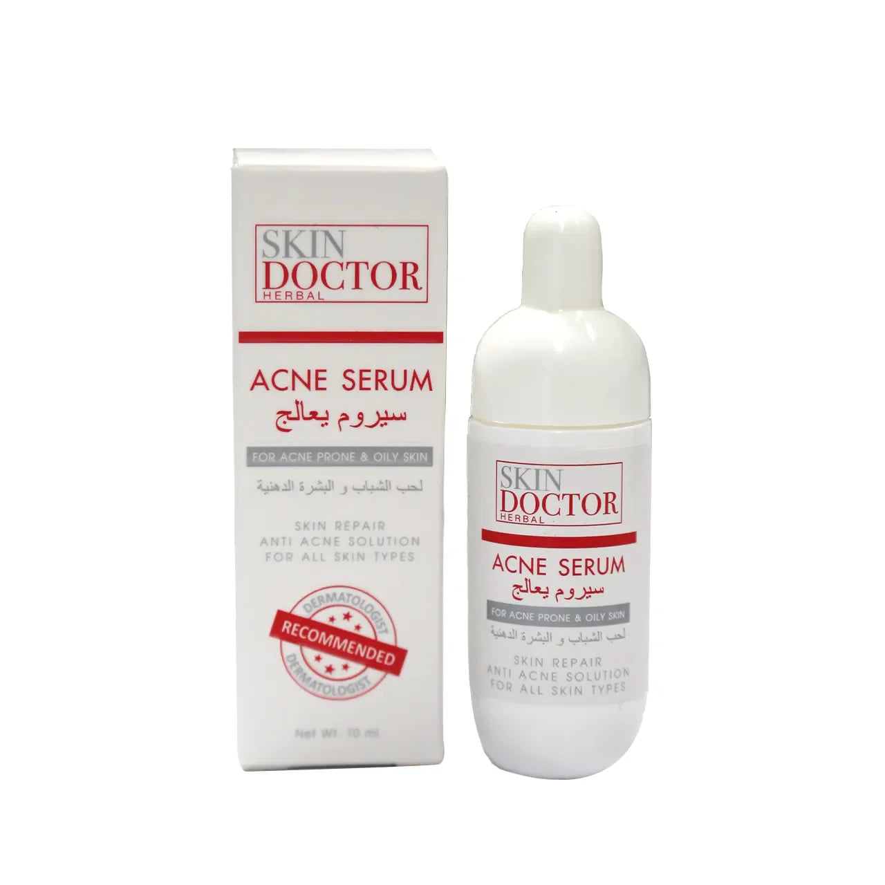 After facial cleansing, evenly drop 1-2 drops of Herbal Skin Doctor Acne Serum and apply directly onto the affected area 2-3 times daily in the morning and at night.