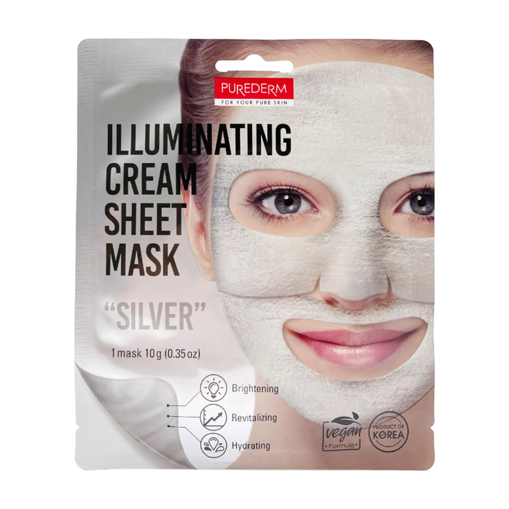 Purederm Illuminating Silver Sheet Mask is specially bonded with silver hologram foil and soft fabric, is an intensive care facial mask so that the enriched cream does not evaporate and is absorbed into the skin without residue. Brightening cream formula adds shine to the skin and Vitamin C provides the skin with a deep vitality. Also, a colorful silver hologram foil fabric prevents the cream from drying out and further promotes the pleasure of using mask.