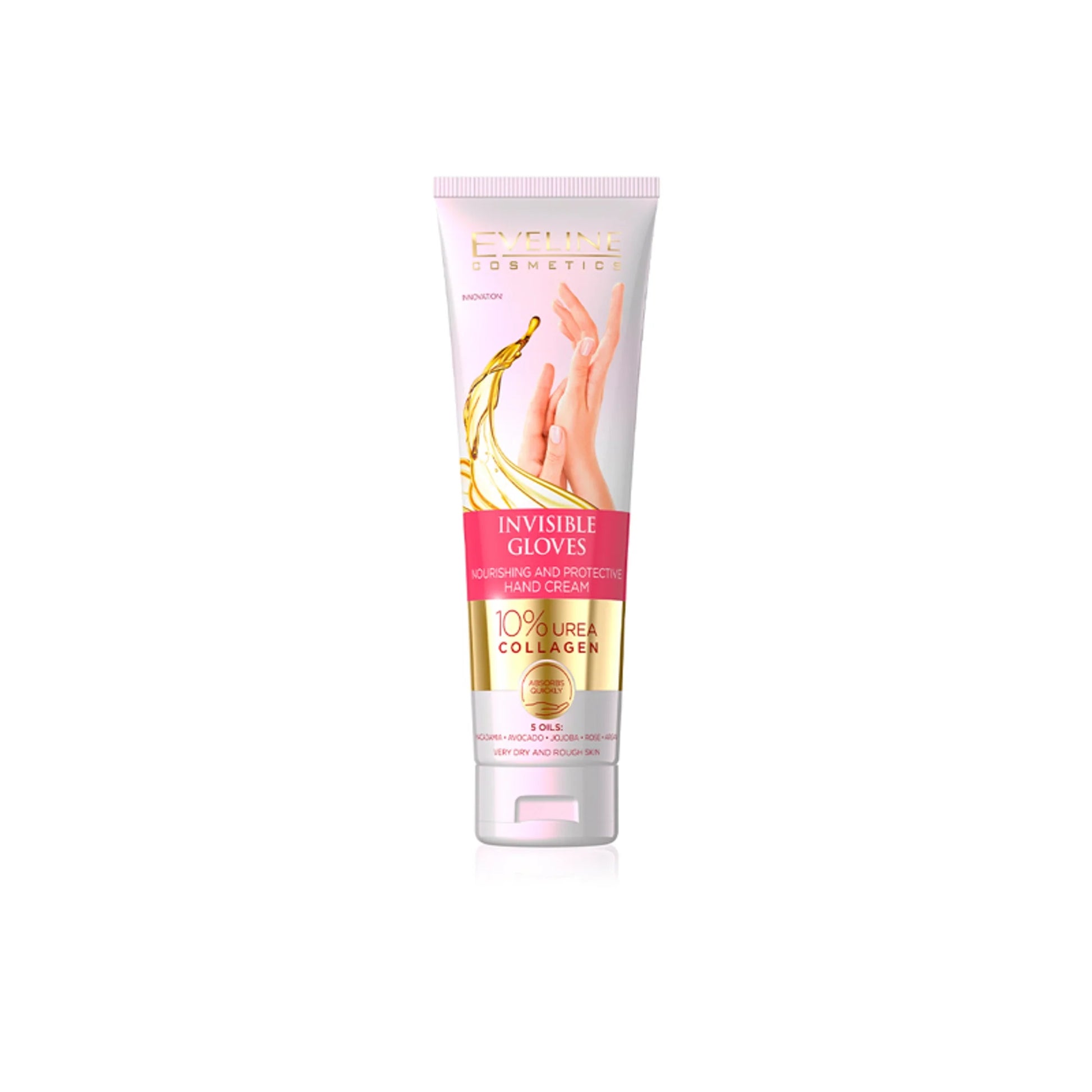 Eveline Cosmetics Invisible Gloves Nourishing & Protective Hand Cream is specially recommended for very dry and rough skin. It is a delicate hand cream with a vitamin formula. Moisturizing, nourishing and firming ingredients contained in the cream keep the hands in perfect condition. All day long the skin is soft, smooth, silky and well moisturized. The most effective active ingredients are present in this cream: 10% Urea, Hyaluronic Acid, Vitamins A, E and F Complex, Collagen, Macadamia Oil, Avocado Oil, Jojoba Oil, Rose Oil and Argan Oil.