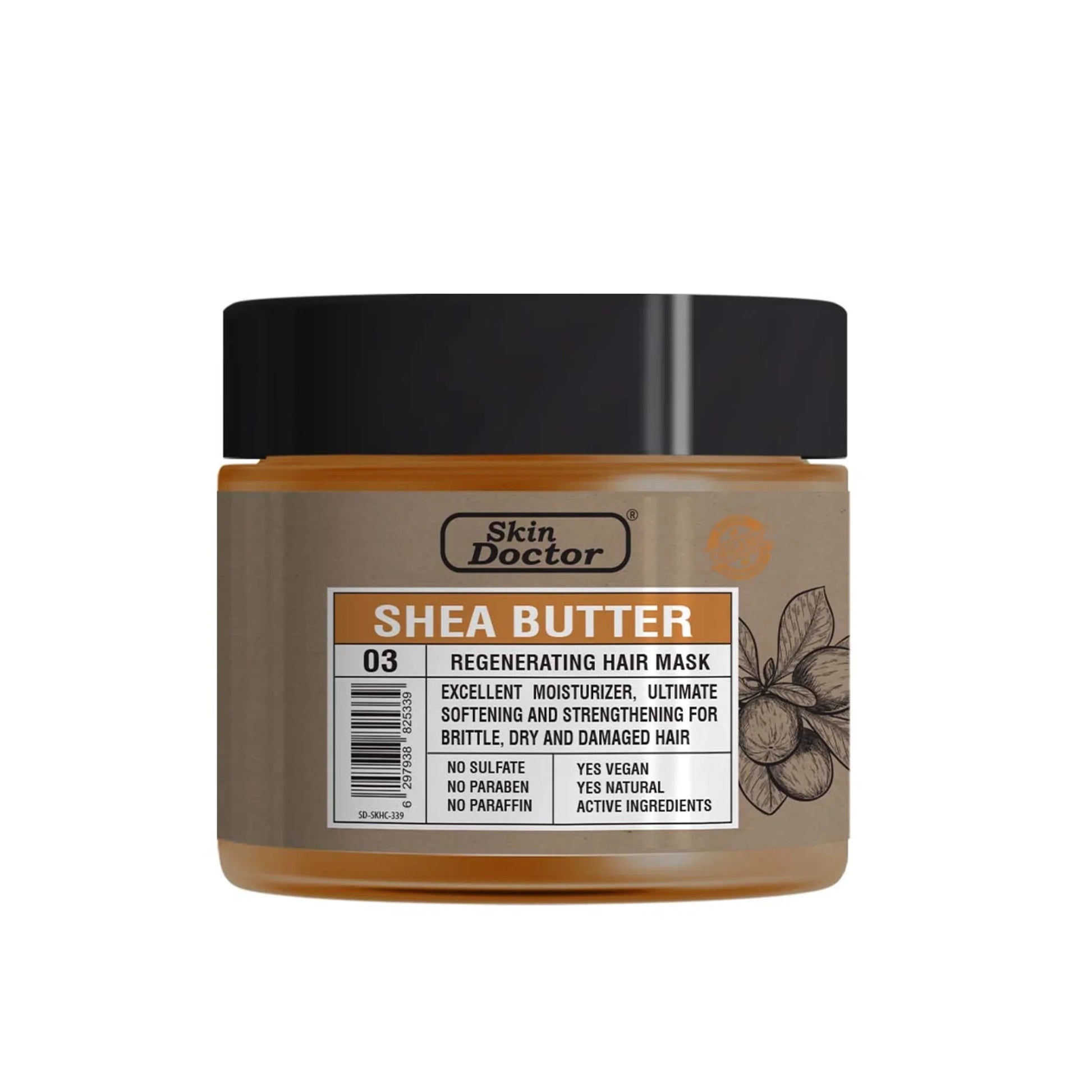 Skin Doctor Shea Butter Regenerating Hair Mask deeply conditions the dry, brittle, damaged and frizzy hair. Rich in Vitamins A and E, highly strengthens the hair strands as well as giving ultimate moisturization. Excellent moisturizer, ultimate softening and strengthening for brittle, dry and damaged hair. - No sulphate. - No paraben. - No paraffin. - Vegan formula. - Natural active ingredients.
