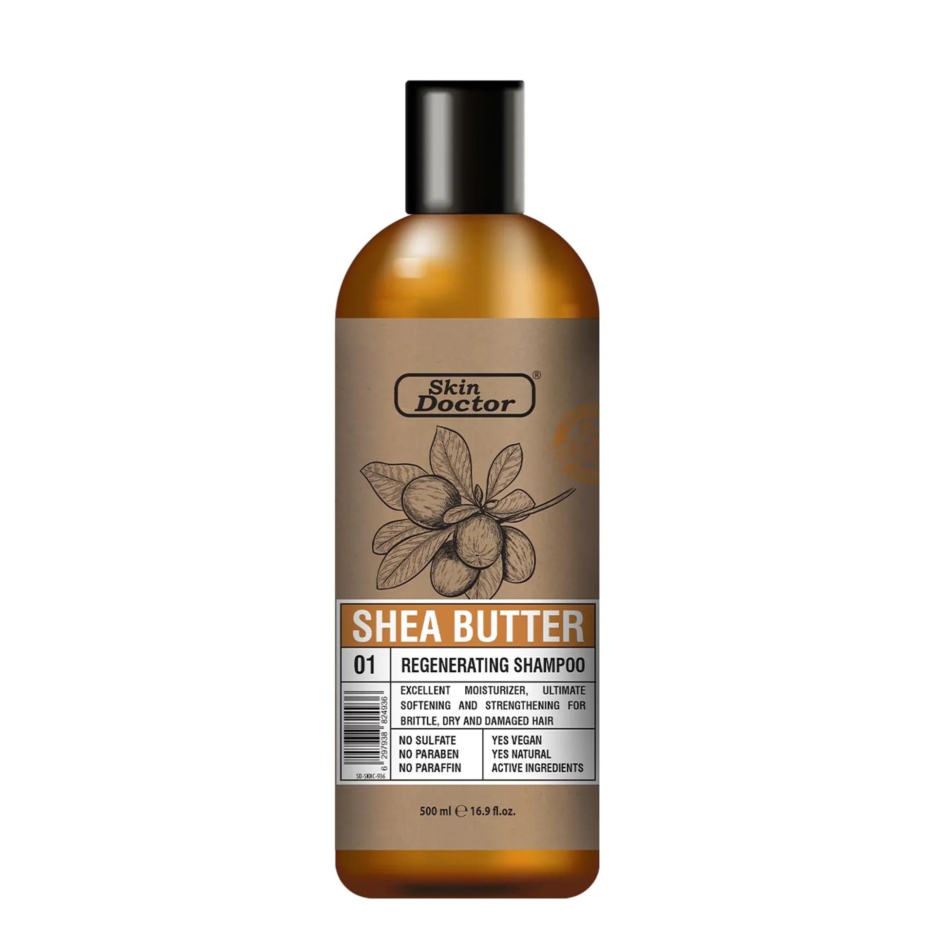 Skin Doctor Shea Butter Regenerating Shampoo deep cleanses, moisturizes and softens the frizzy brittle, damaged and dry hair. Rich in Vitamin A and E, it strengthens the strands and regenerates the hair for a healthy appearance.
