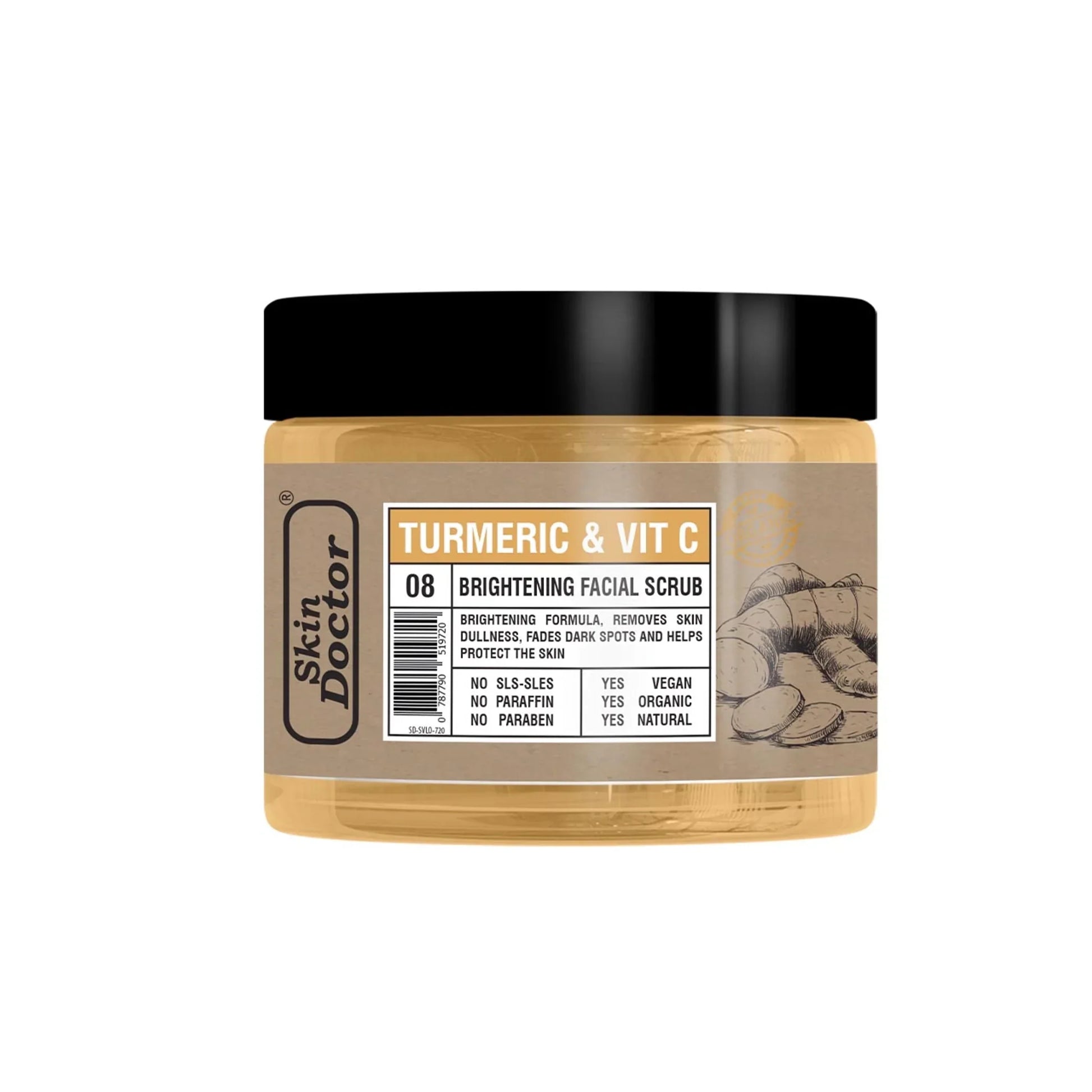 Skin Doctor Turmeric & Vit C Brightening Facial Scrub is a deep cleansing exfoliant that gently removes the dirt and impurities form the skin while intensely moisturizing it. The result is a highly nourished, soft and glowing skin. Brightening formula, removes skin dullness, fades dark spot & helps protect the skin. - No SLS-SLES - No paraben - No paraffin - Vegan formula - Natural active ingredients