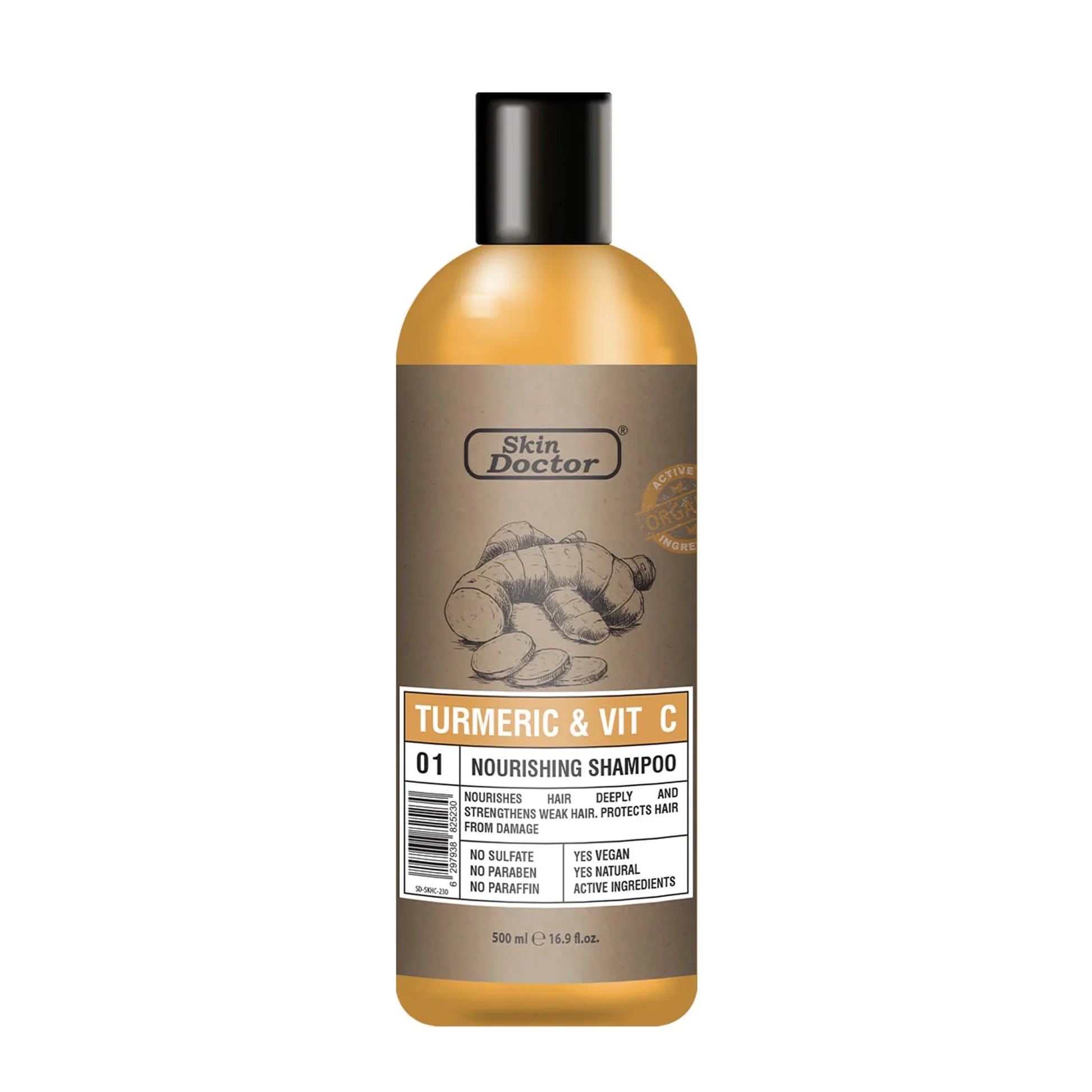 Skin Doctor Turmeric & Vit C Nourishing Shampoo gently cleanses and hydrates while highly protecting it from further damage. Nourishes hair deeply, strengthens weak hair and protects hair from damage: - No sulphate. - No paraben. - No paraffin. - Vegan formula. - Natural active ingredients.